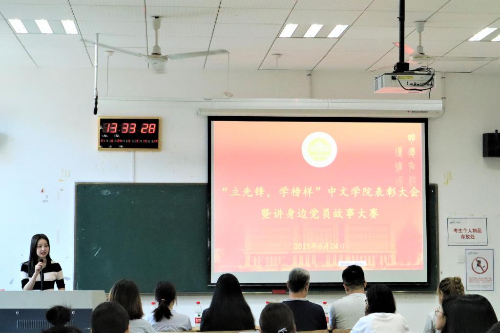 为选树榜样、表彰先进,更好激励学院广大学生党团员坚定信念、担当有为,以实际行动向建党100周年献礼,在中文学院党总支指导下,学生党支部于6月24日下午举办“庆祝建党百年”表彰大会暨“讲身边的党员故事”活动。学院党总支委员、副院长李倩老师,党总支委员、团委书记、学生第二党支部书记吴昕瑶老师,教工第二党支部书记孟奕辰老师和团委副书记、学生第一党支部书记郑王梁老师出席。