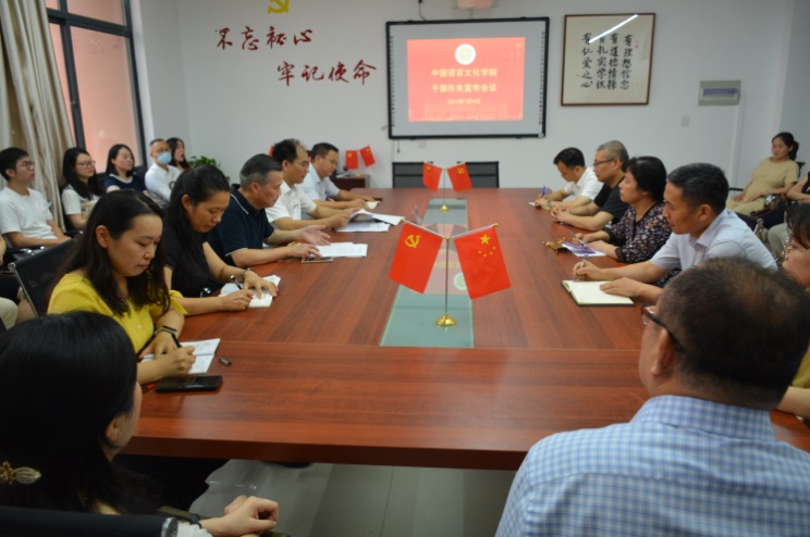 在品院C307召开干部任免宣布会。校党委副书记赵文波,校党委委员,组织部、统战部部长徐勇出席会议,学院党政领导班子及全体教职工参加了会议。