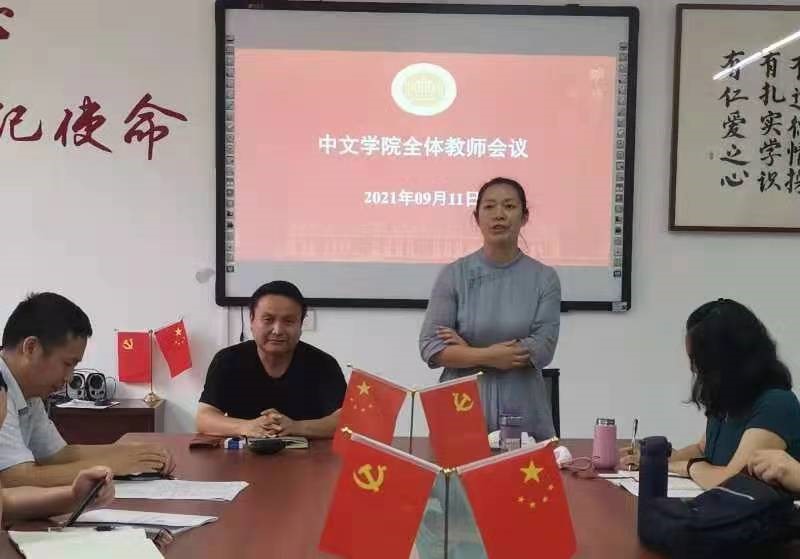 会上,杨飞群书记传达了学校中层干部会议的精神和学院三次党政联席会议达成的共识,她希望全体教师要聚焦学校“三地四域”建设,积极投入到学院的改革发展中,充分发挥中文学院特色优势,全面提升办学质量和效果。杨书记代表学院也对新入职的教师表示热烈欢迎。