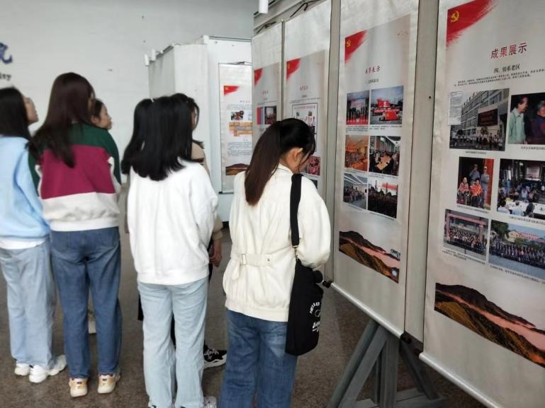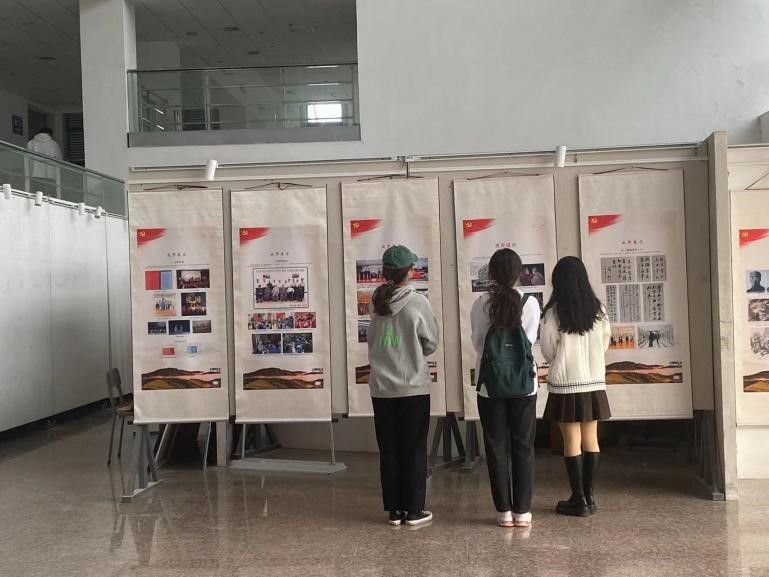 师生来到展厅专注、认真地观看图片,也自觉接受了党史学习教育。
