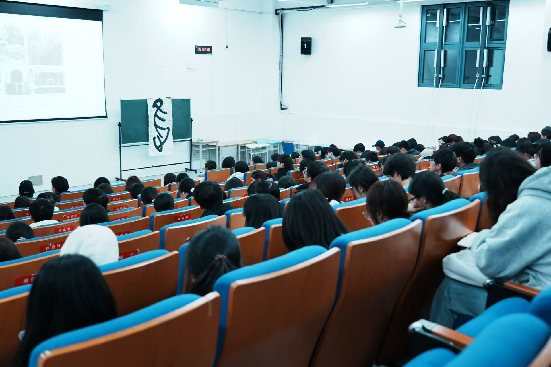 ,以“甲骨文:从过去到未来”为题,为师生揭开甲骨文及甲骨文书法艺术的神秘面纱。融院B108报告厅座无虚席,中文学院2024级汉语言文学专业、汉语国际教育专业全体学生参加了讲座。
