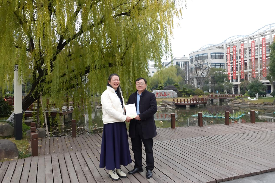 此外,1998届中文校友杨春林也向母校捐赠个人著作2本,学院党委书记杨飞群在杭州长河高级中学代表学校接收了赠书。