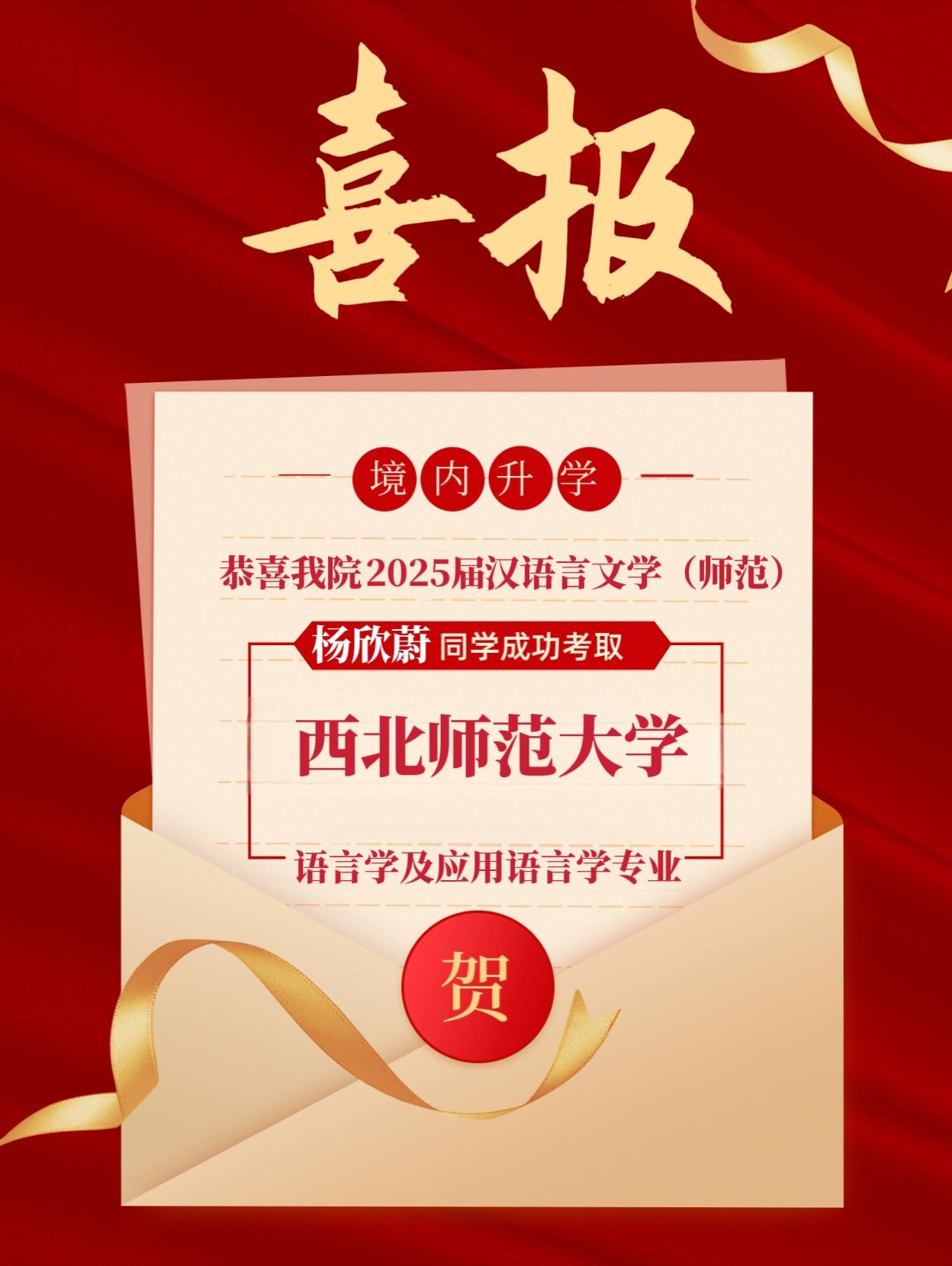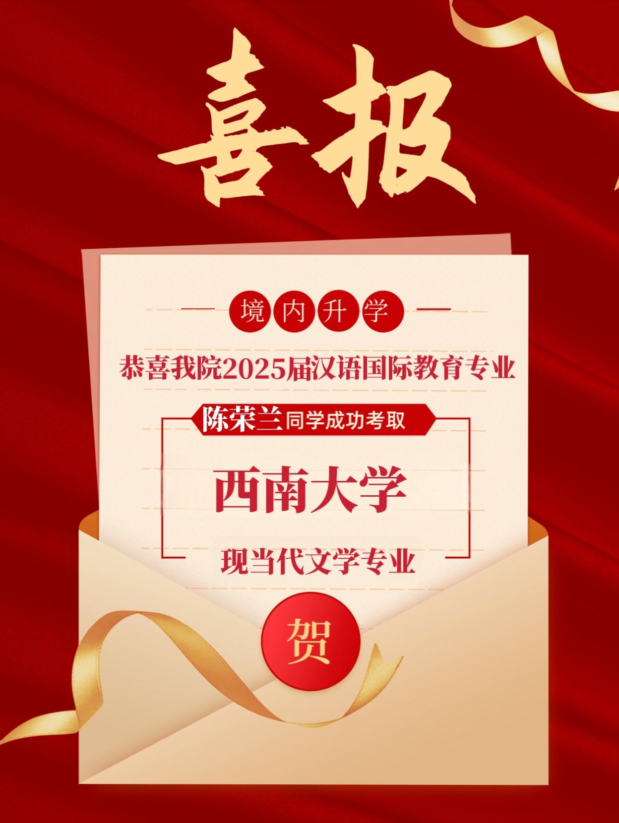“晚风会来,花一定会开”,在今年的国内考研中,禁漫天堂 喜讯不断传来,多名学子以优异的成绩成功考取了国内知名高校的硕士研究生,这些高校分别为浙江大学、华东师范大学、西南大学、安徽大学、河海大学、南京师范大学、浙江师范大学、杭州电子科技大学、西北师范大学、四川外国语大学、大连外国语大学、北京工商大学、天津理工大学。这些高校均拥有优质的教学质量,是众多学子心仪的学术殿堂。祝贺我们的学子开启学术征程的新篇章。