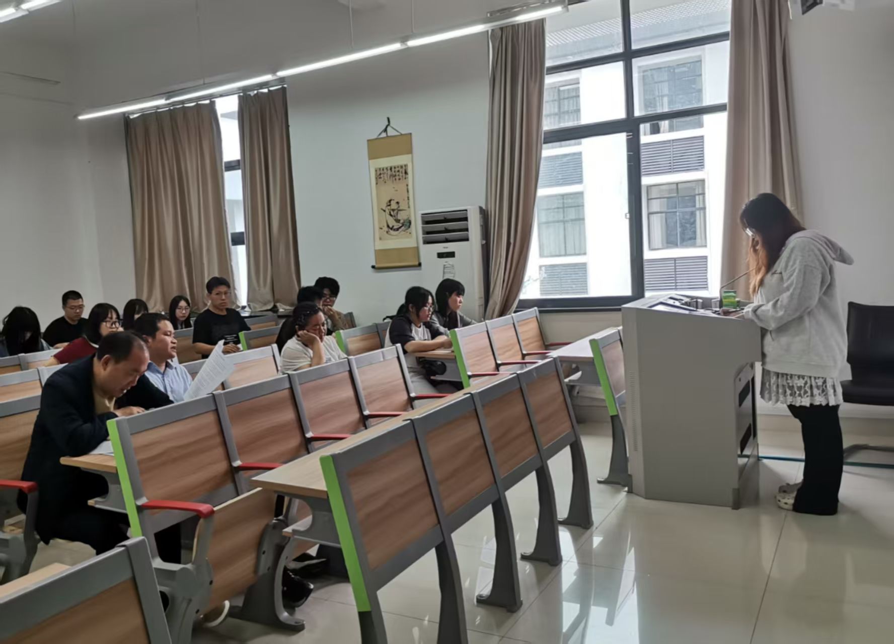 2025届汉语言文学(师范)、汉语言文学(涉外文秘)、汉语国际教育、网络与新媒体专业学生毕业论文答辩会共分成12个组顺利举行。各组老师针对同学们的论文报告,逐个提问,提出了答辩意见,并进行了答辩成绩评定。
