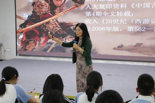 4 月 18 日,中文学院赵红娟教授走进文华中学,以《大圣的“眼泪”与“情根”》为题开展阅读指导,带领文华学子开启了一场精彩的文学探索之旅。