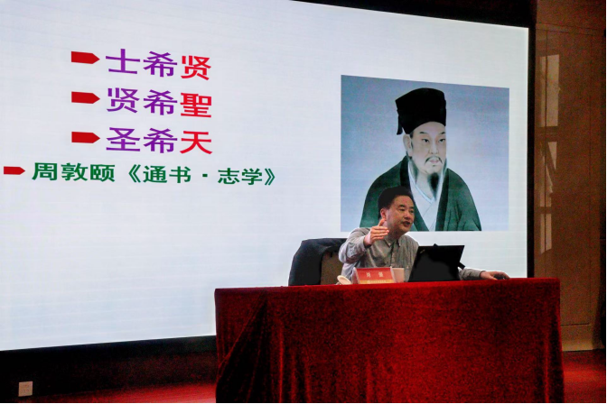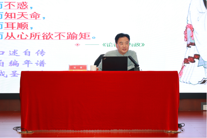 刘强教授从孔子的生平和贡献讲起,强调要重新发现孔子。他跳出传统的“三家一人说”的局限,提出孔子是“中华民族的圣人,中华文化的恩人,中国百姓的亲人”。刘强教授对《论语·为政》的详细释读,让师生们了解到孔子眼中人生各个阶段应当树立的目标。其中“吾十有五而志于学”一言,激励着同学们在学习道路上树立志向,奋发向前。