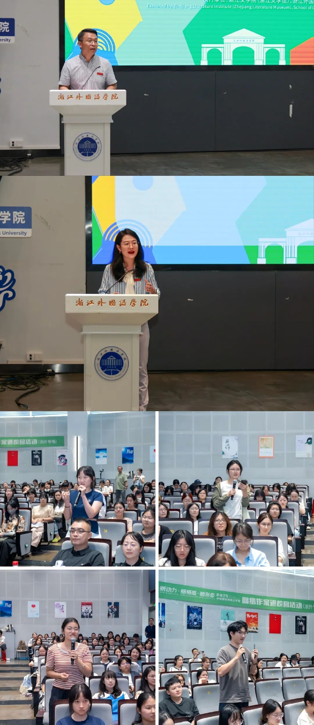 秋色浸染校园,书香氤氲浙外。9月27日,2025中国国际网络文学周正式启幕的第二日,“知名网络作家进校园”活动在浙外望院C116报告厅举行。中国作家协会党组成员、书记处书记胡邦胜,校党委书记、校长张环宙出席并讲话。浙江省作家协会党组书记、副主席叶彤出席活动。副校长、党委委员毛振华主持。