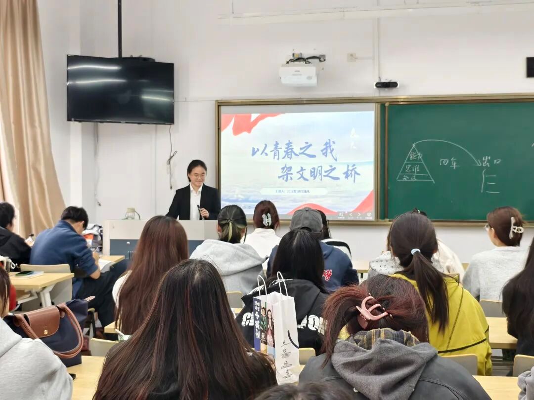 “青学青”学习教育宣讲团成员23汉教班吴逸凡和24汉教班的冯嘉卉、樊凯达和张羽馨四名同学分享国际传播实践感悟以及汉教专业的三条发展路径,为新生适应大学生活提供了实用参考。