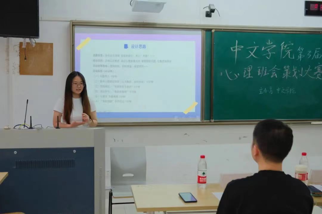 第三届心理班会策划大赛决赛成功召开。本次比赛邀请到西语学院辅导员韩晶、中文学院辅导员任欣妮、陈宗正担任评委。