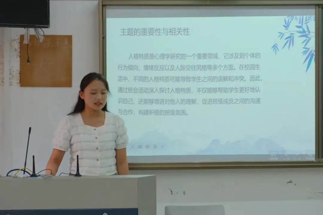 23汉师1班卫甜冬将目光放在自我他人的关系上,通过让同学们了解不同人格,达成内外认识与理解;23汉师2班刘梦圆选择了“敞开心扉、拥抱快乐”的主题,通过协助大家吐露心声,缓解同学们的压力与负面情绪。