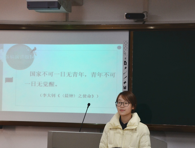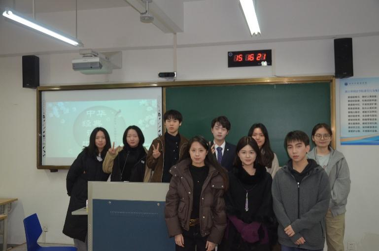 12月11日下午,中文学院第九届中华经典诵读大赛初赛在融B105拉开帷幕。比赛设置“诵读经典”与“即兴演讲”两大环节,限时七分钟。本次大赛邀请到浙江省第十三届大学生“典润之江”一等奖获得者22小教2班林雨婷、23小教1班蒋紫晗以及二等奖获得者23英师3班杨奕睿担任评委。